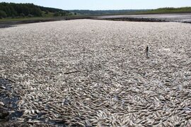 Polşa və Almaniyadan axan Odra çayının sahili boyu 10 tondan çox ölü balıq tapılıb. xəbər verir ki, İlkin ehtimallara görə, buna çayın çirklənməsi səbəb olub. Kütləvi çirklənməyə görə məsuliyyət daşıyanların müəyyən edilməsin
