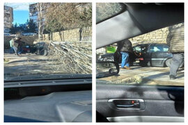 Bakının mərkəzində külək ağacı aşırdı: 2 maşın zədələndi - FOTO