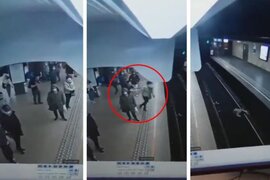 Metroda qadını relslərin üzərinə itələdi - VİDEO
