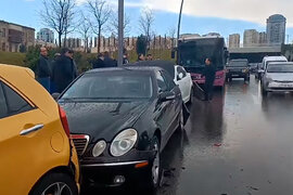 Bakıda avtobus maşınlara çırpıldı - VİDEO