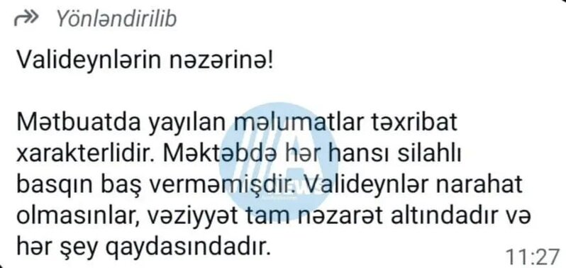 KONKRET.az Savaşmediaya istinadla "İdrak" liseyi rəhbərliyinin valideynlərin "vatsap" qrupuna göndərdiyi mesajı fotosunu təqdim edirik:
