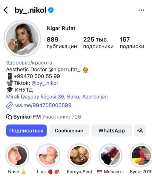 Bu arada, qeyd edək ki, Nigar Rüfət estetik cərrahlar üçün oktyabrın 26-da "The art of Facial Harmony" adlı master-klass keçirəcək. Bir sözlə heç bir tibbi təhsili və sertifikatsiyası olmayan Nigar xanım həkimlərə dərs deyəcək.