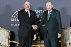 Azərbaycan Respublikasının Prezidenti İlham Əliyev Türkiyə Respublikasının Prezidenti Rəcəb Tayyib Ərdoğanın dəvəti ilə 5-ci Antalya Diplomatiya Forumunda iştirak etmək üçün aprelin 16-da Türkiyəyə işgüzar səfərə gedib. xəbə