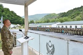 Silahlı Qüvvələrin Müzəffər Ali Baş Komandanı İlham Əliyev Kəlbəcər rayonunda komando hərbi hissəsinin açılışında çıxışı sosial şəbəkələrdə gündəm olub. xəbər verir ki, Prezidentin çıxışında "Bax, o dağın başında məni